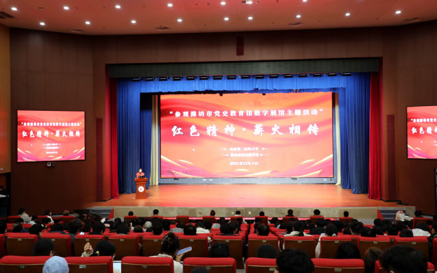 实地研学结束后,学院组织学生在学校文体活动中心报告厅开展数字展馆主题活动。此次活动由学校大学生“理响”宣讲团担任主讲,宣讲团成员以“红色精神・薪火相传”为主题,紧密结合潍坊本地党史资源,通过生动的革命故事讲述、典型党史案例解读、红色精神内涵阐释等形式,系统梳理了潍坊地区党组织带领群众奋斗的光辉历程,清晰阐释了红色精神在不同历史时期的时代价值。